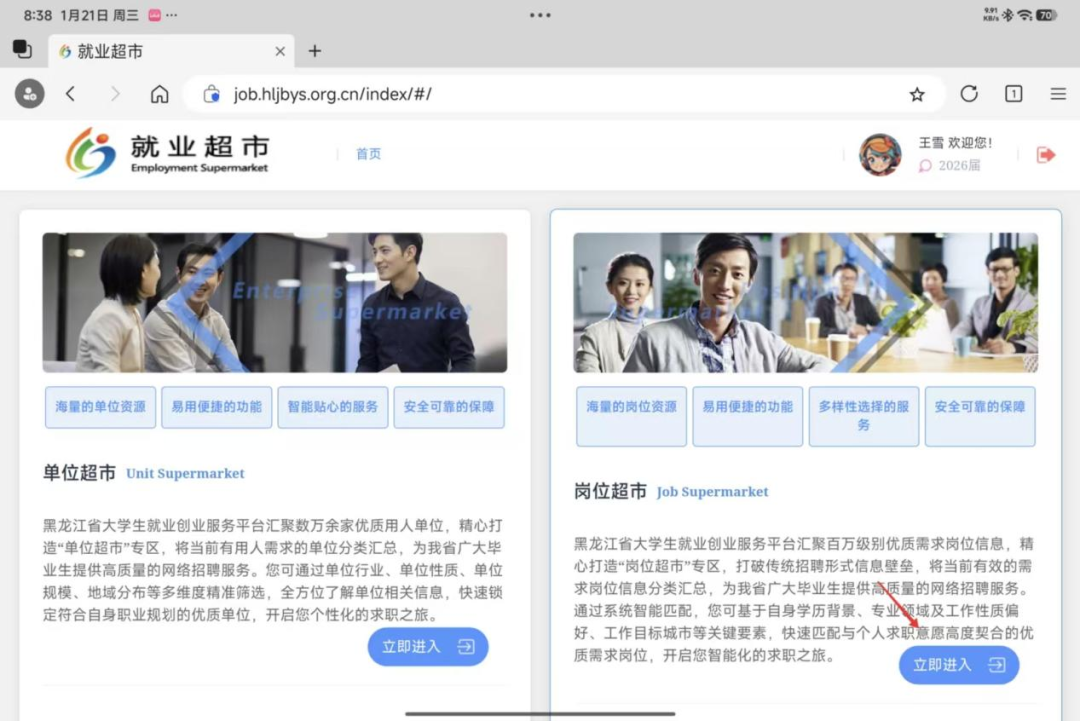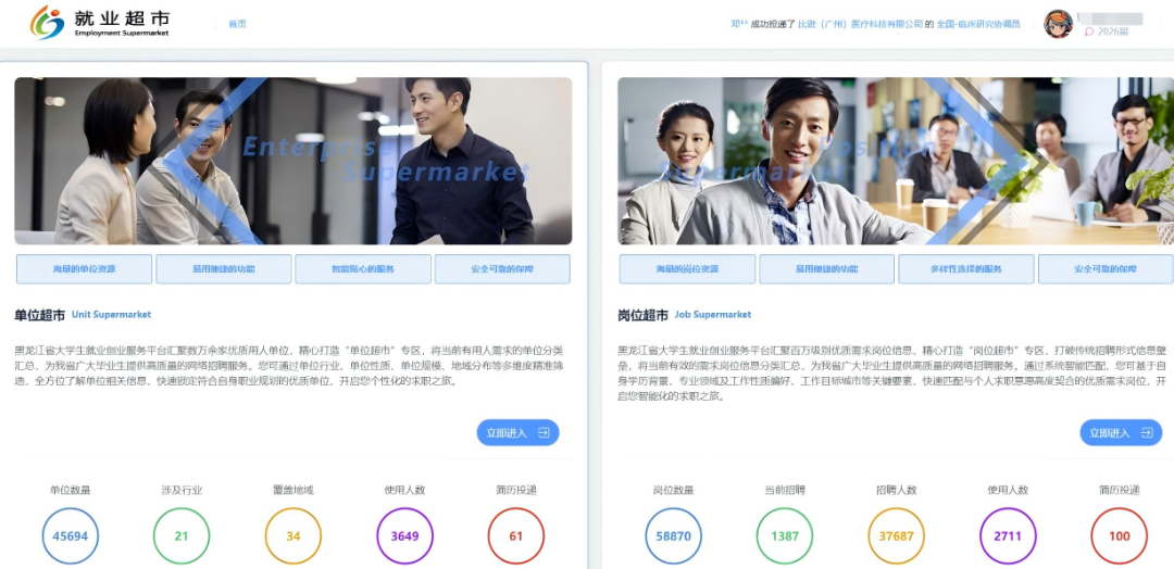 为破解求职信息壁垒,精准对接岗位需求,黑龙江省大学生就业创业指导中心推出了“就业超市”的服务系统,将在2026年1月1日正式开放,为全省毕业生送上就业大礼包。登录注册流程如下: