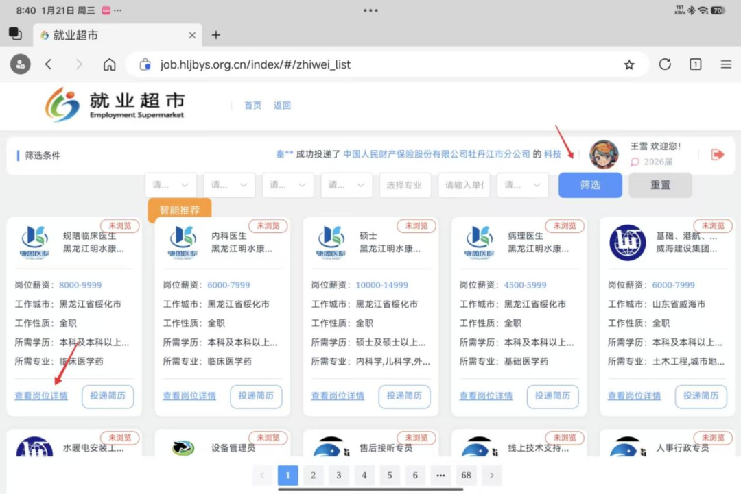 (一)PC端操作 1.毕业生直接进入“就业超市”(https://job.hljbys.org.cn)