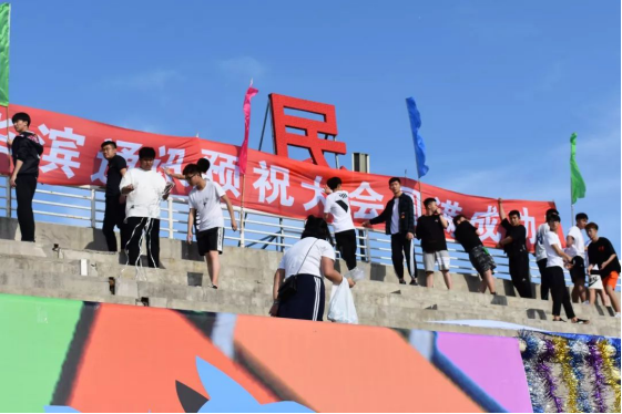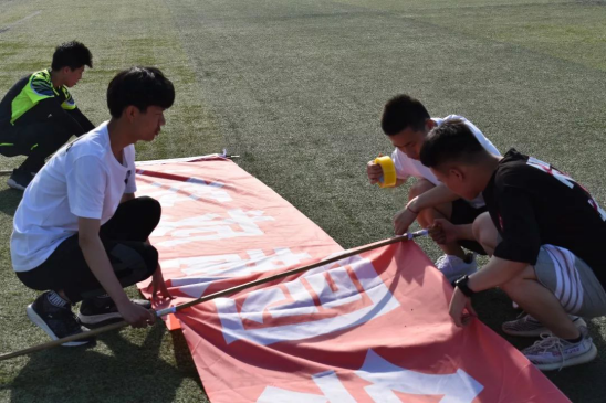 在这金色的五月,微风不燥,阳光正好。哈尔滨石油学院第八届田径运动会开展前日,经济管理学院学生组织踏着晚霞,怀着激情,共同进行会场布置。