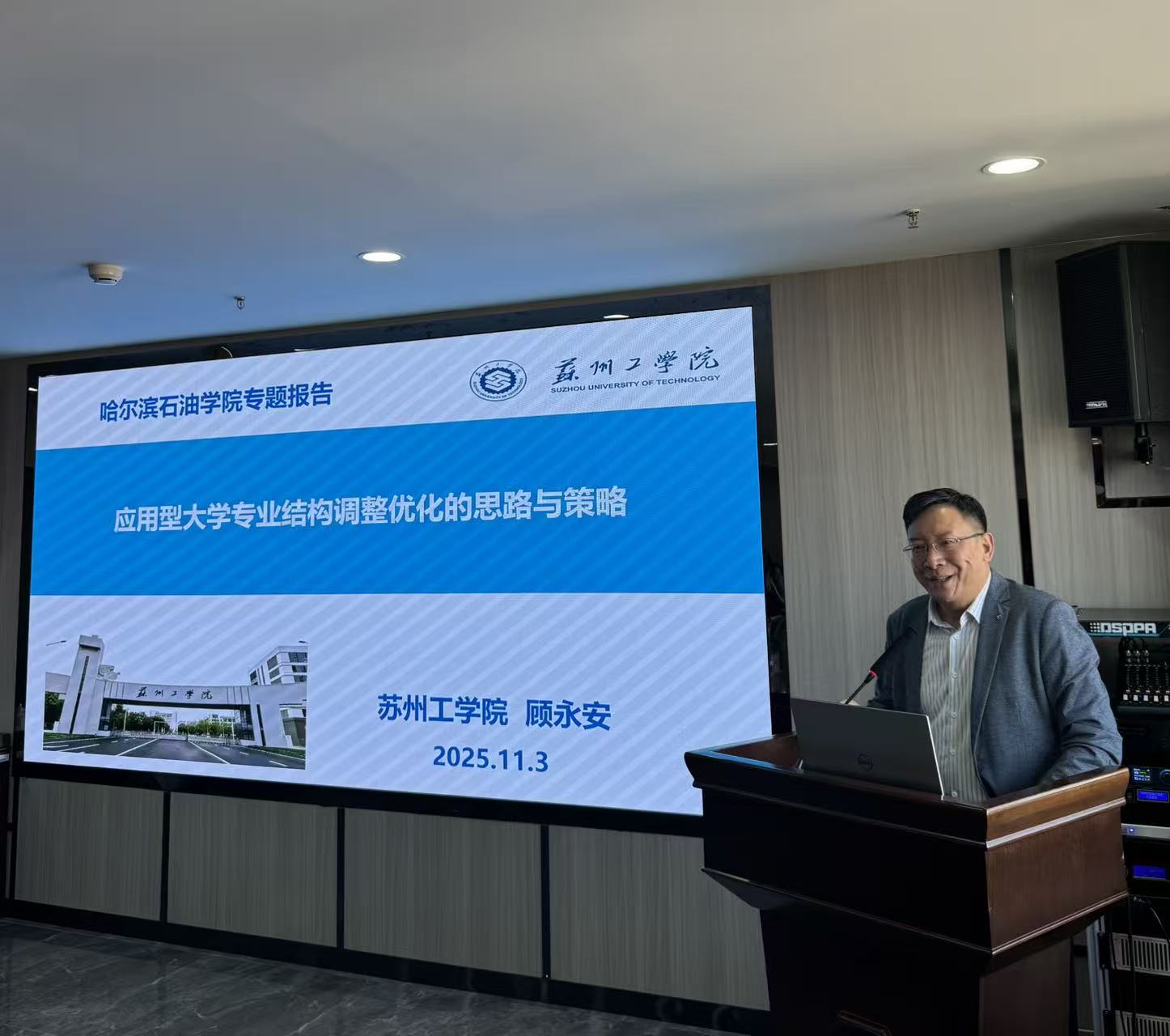2025年11月3日上午,我校在综合楼1515会议室举办“应用型大学专业结构调整优化的思路与策略”专题讲座,特邀苏州工学院顾永安教授主讲。副校长冯研、各二级学院院长及副院长、教务处相关负责人参会,讲座由教务处副处长周微主持。