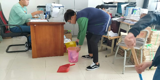 志愿者们都积极主动,不怕脏不怕累,团结协作,工作很快就完成。为了尽量减少工作中的纰漏,清理完毕志愿者们又细致的对办公室中备品的位置进行了一一的检查,清理过后的地方都变得更加整洁、明亮,志愿者们也倍感满足。老师们也十分的欣慰。