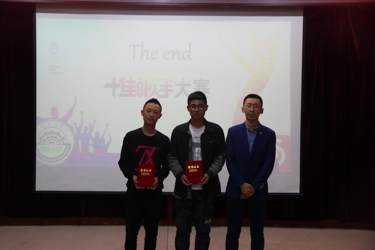 本次十佳歌手比赛经过海选、初赛激烈的角逐,共有12位选手脱颖而出来到决赛现场。此次大赛伴随着2017级十佳歌手代表景胤泓毅的《单身情歌》和刘昊男的《红色高跟鞋》深情演唱拉开帷幕。随后,我院2017级十佳歌手冠军兰钧凯同学带来的一曲经典的《我的家在东北》将场内气氛推向高潮。本次大赛共分为清唱和自我介绍、自选曲目独唱、歌手分组表演三个环节,十二位选手经过激烈角逐,赵文卓、邓生财、周爽、王琪、韩一成、孙启文、房晓琳、孙金斗、孙思奇、吴浩禹获得十佳歌手称号。赵文卓同学获得本次十佳歌手大赛一等奖;周爽、韩一成同学获得二等奖;王琪、孙思奇同学获得三等奖;朱文昊同学获得最佳舞台表现奖;谷浩源同学获得最佳人气奖。在统计得分的同时现场穿插了由2016级刘泽众学长带来的《order》魔术,让在场观众惊赞不已。学院领导和老师为本次获奖选手们颁奖,苏永彬书记表示本次活动促进了同学们之间的交流,给同学们一个舞台充分展示自己的才华,希望刚来到大学的2018级同学多参加活动、多锻炼自己,规划好自己的大学生活,提前祝大家中秋节快乐。