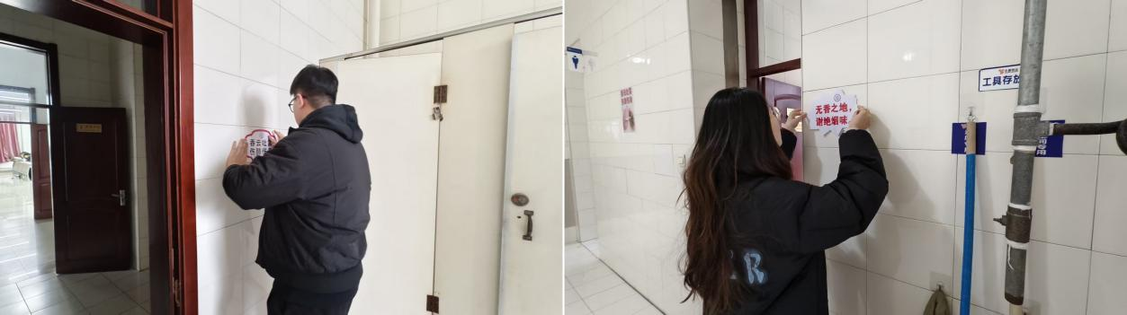 为积极响应学校禁烟的号召,营造清新、健康、文明的校园环境,引导师生树立健康生活理念,智能工程学院于2025年11月10日组织开展了“标语传新风,健康护校园”卫生间禁烟标语张贴行动,以实际行动推动“校园无烟”建设落地见效。