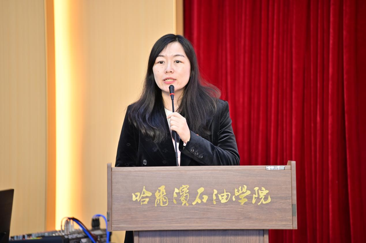 老团员代表张宏野发言,她讲述了在团组织中参与志愿服务、学习理论知识、提升自身能力的宝贵经历,强调了共青团对青年成长的重要引领作用,鼓励新团员们珍惜团员身份,在今后的学习和生活中,勇于担当,积极进取,用实际行动践行共青团员的使命。