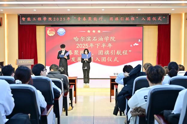 为深入学习贯彻习近平总书记关于青年工作的重要思想,切实加强共青团组织建设,引导青年学生坚定理想信念、勇担时代使命,12月11日,智能工程学院在主教518举行了2025年“青春聚能行,团旗引航程”新发展团员入团仪式。学院团总支书记、团总支副书记、各班团支部书记、2025年新发展的179名新团员出席仪式。