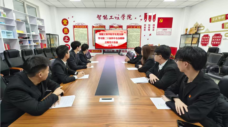 为深入学习贯彻党的第二十届四中全会精神,切实把学生党员的思想和行动统一到全会精神上来,强化党员的责任意识与使命担当,智能工程学院学生党支部于2025年10月26日在主教414室组织开展学习第二十届四中全会精神主题党日活动。
