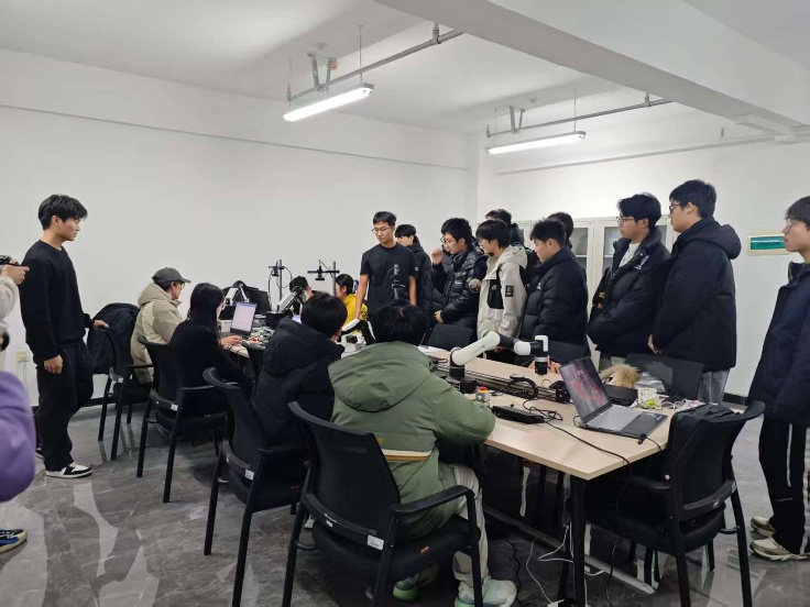 活动伊始,志愿者们在双创中心工作人员的引导下,首先参观了智能装备展区。通过他们的细致讲解,大家深入了解了机械臂的原理、编程逻辑及在生产中的应用场景,现场观摩了机械臂精准完成物料抓取、组装等操作的全过程;在3D打印专区,从设计建模到耗材选择,再到层层打印的完整流程直观呈现,同学们不仅见证了数字模型转化为实体物件的神奇过程,还近距离观察了不同精度打印作品的细节差异。随后,同学们走进双创中心直播间,沉浸式体验新媒体运营场景。工作人员详细介绍了直播间的设备调试、脚本设计、互动技巧及流量运营等核心内容,同学们亲身感受了镜头前的表达逻辑与直播流程的衔接要点,对“科技与新媒体”的融合发展模式有了更直观的认知。