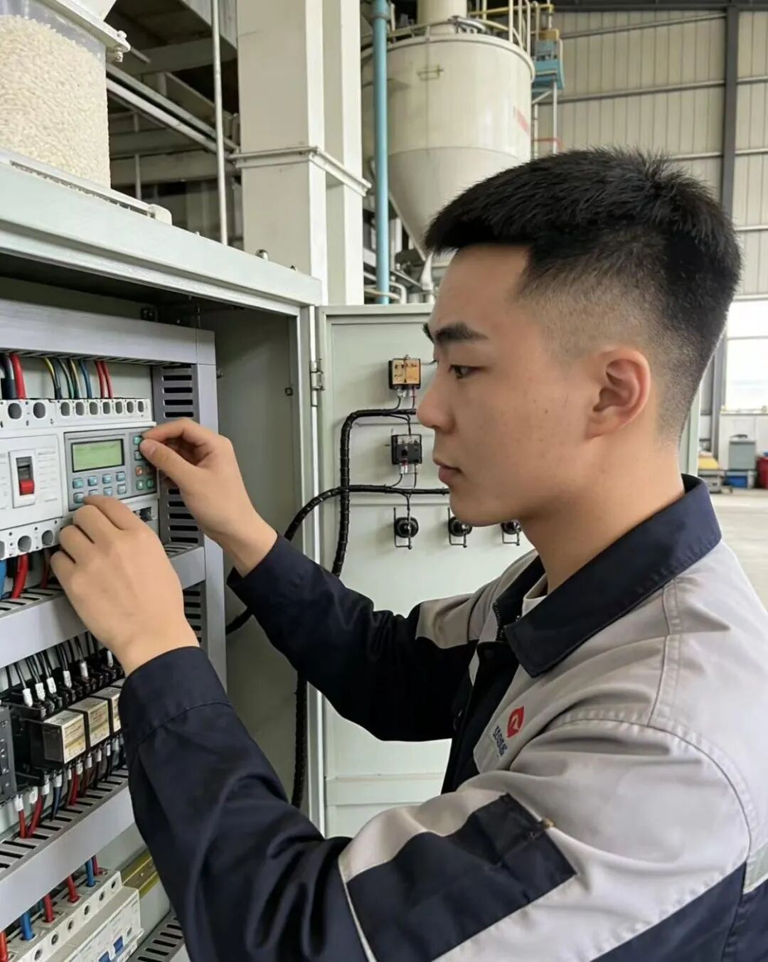 柳秀岭,男,中共党员,哈尔滨石油学院2022级电气工程及其自动化专业一班学生,在校曾任班级团支部书记一职。目前在镇赉县麒麟王米业有限公司设备部担任设备检测与维修岗位实习技术员。在实习工作中,主要负责参与公司生产设备的日常检测与维护,按照规程进行故障诊断与修复,执行设备定期保养计划,保障生产设备的稳定运行与工作效率。