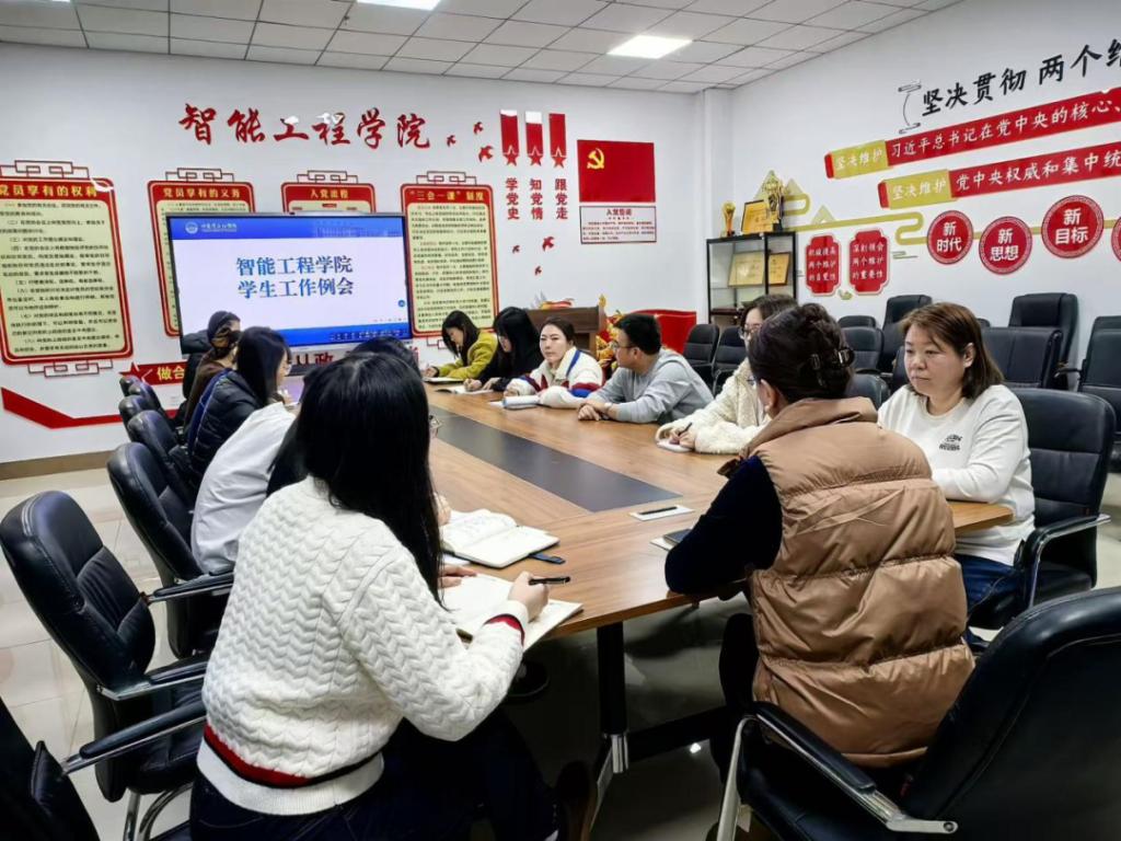 为强化我院辅导员队伍建设,提升学生管理工作质量,助力学生全面发展,引导学生树立正确价值观与行为规范,智能工程学院于2026年3月16日在第一教学楼414召开新学期学生工作例会。本次会议由智能工程学院党总支书记吴东爽主持,全体辅导员出席本次会议。