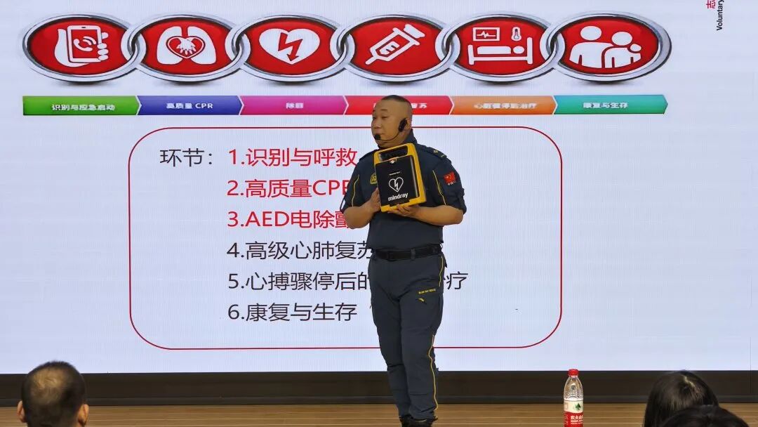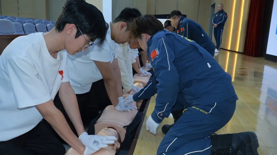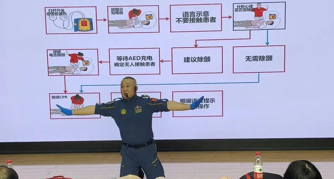 此次培训紧扣应急救援核心技能,哈尔滨红十字蓝天救援队的讲师结合真实救援案例,系统讲解了心肺复苏(CPR)、AED自动体外除颤器操作、腹部冲击法等关键技术要点。围绕心脏骤停“黄金4分钟”急救原则,详细示范胸外按压的力度、频率与人工呼吸的规范配合;针对气道异物梗阻场景,拆解背部叩击、腹部冲击的精准定位与正确发力要领;并分步演示AED开机、电极片粘贴、心律分析、电击除颤全流程,引导学员严格遵循“听它说、跟它做”的操作规范。