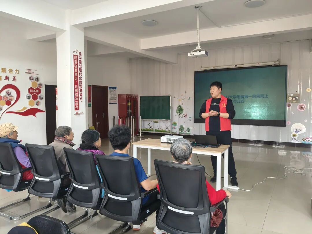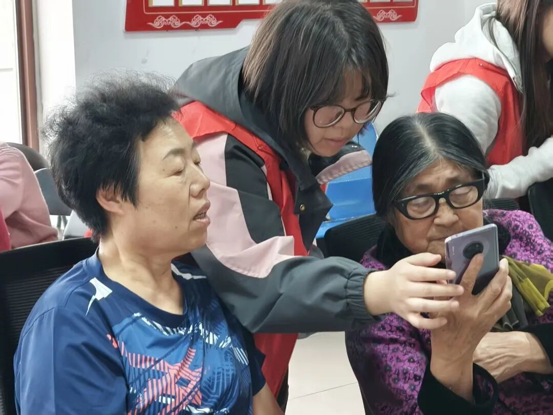 活动伊始,宣讲团成员们提前抵达社区活动场地,有序布置好教学设备与宣传资料,耐心调试投影,为即将开始的助老教学做好充分准备。宣讲成员先带领老人们一起做简单的手指操,活动关节、放松手指,随后围绕大家日常最需要的内容展开教学,详细讲解了电子社保卡申领与使用、手机线上挂号、公交出行扫码、打车等实用技能,用简洁易懂的方式一步步演示,并对操作不熟练的老人进行耐心指导。