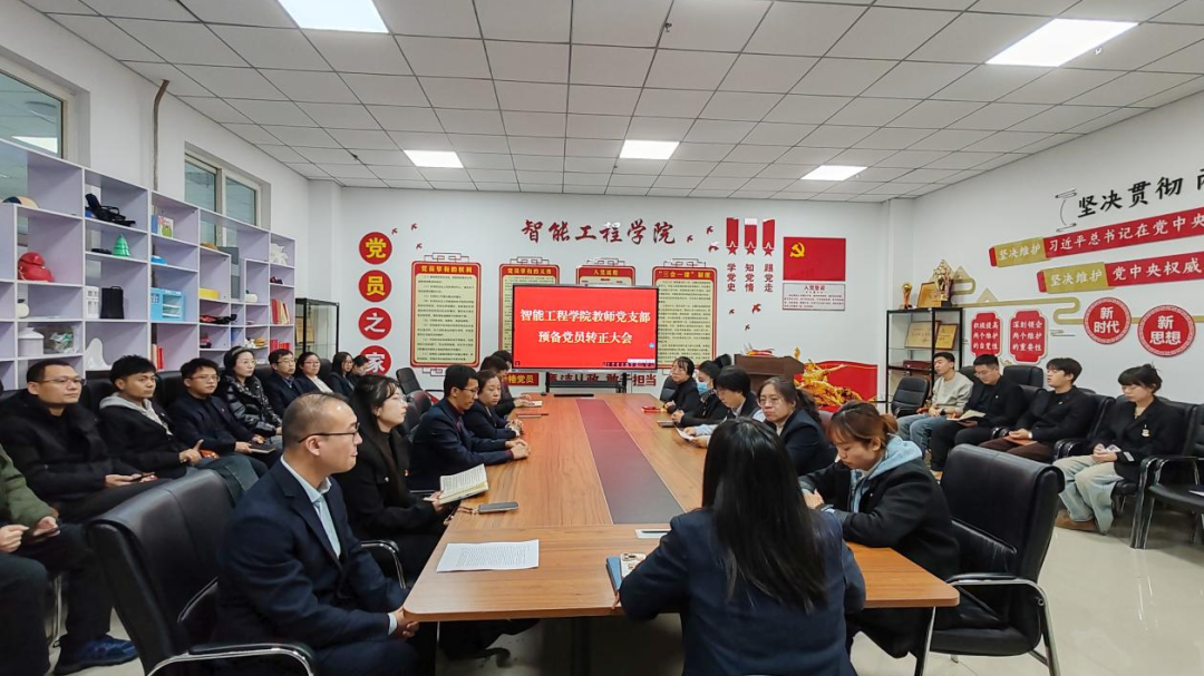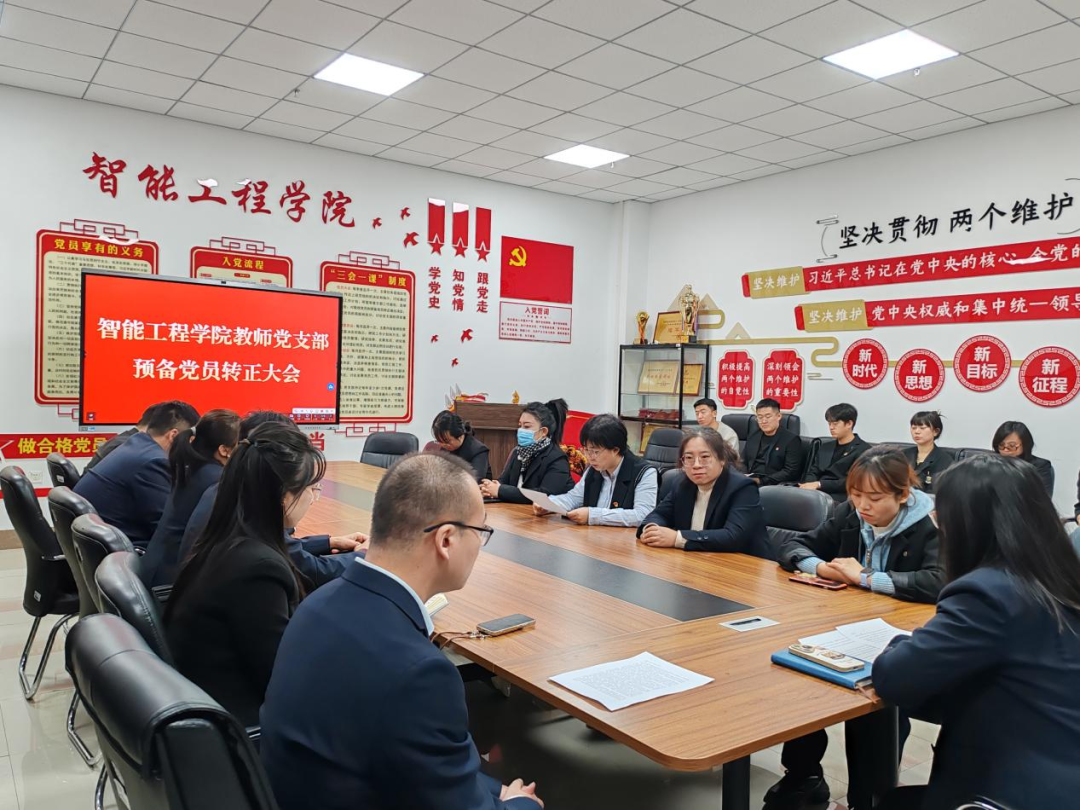 为严格党员发展程序、强化党员队伍建设,12月8日,智能工程学院教师党支部在主教学楼414会议室召开预备党员转正大会,全体党员教师参加会议,会议由党支部书记韩蓉同志主持。