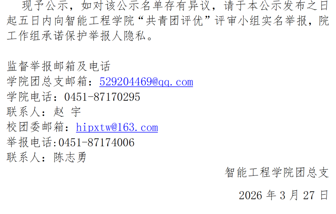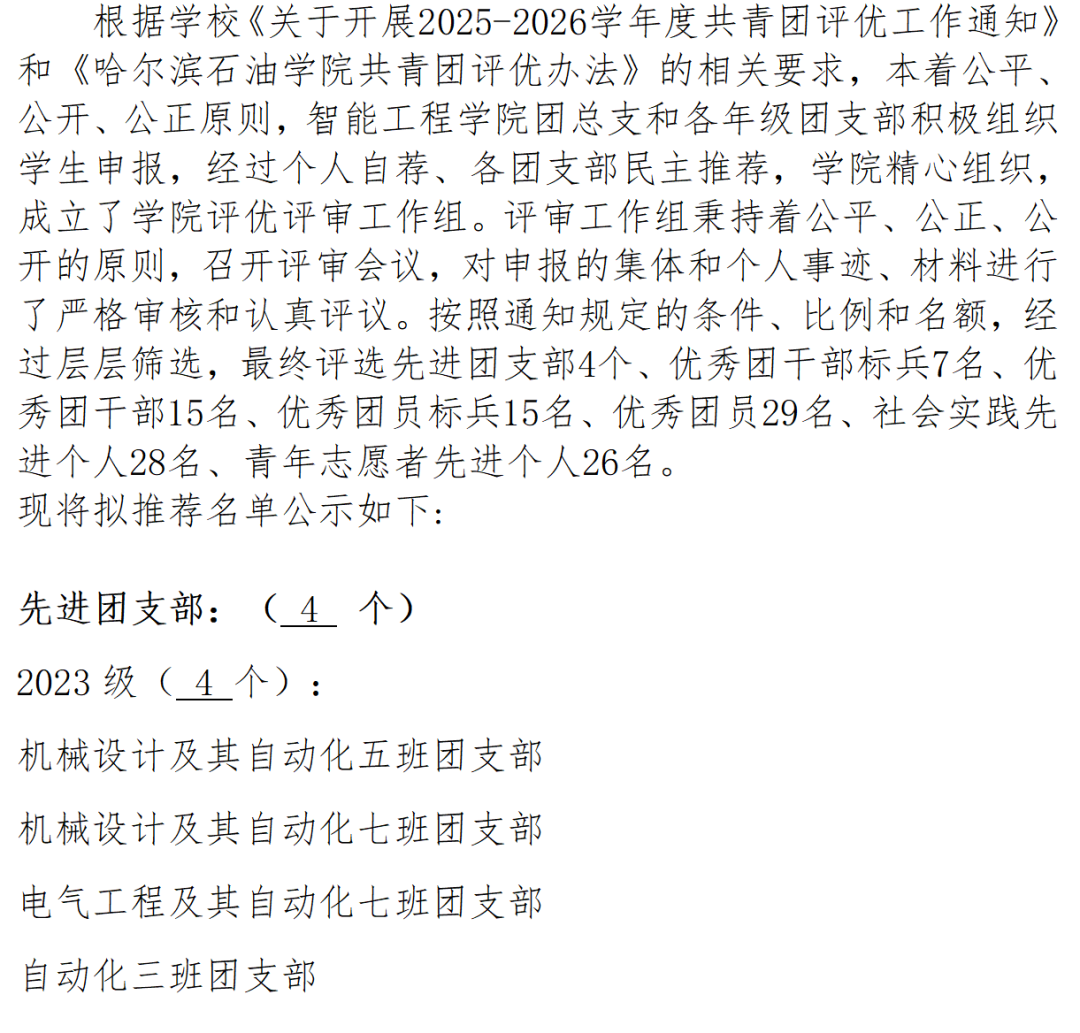 智能工程学院2025—2026学年共青团先进集体及优秀个人评选结果公示