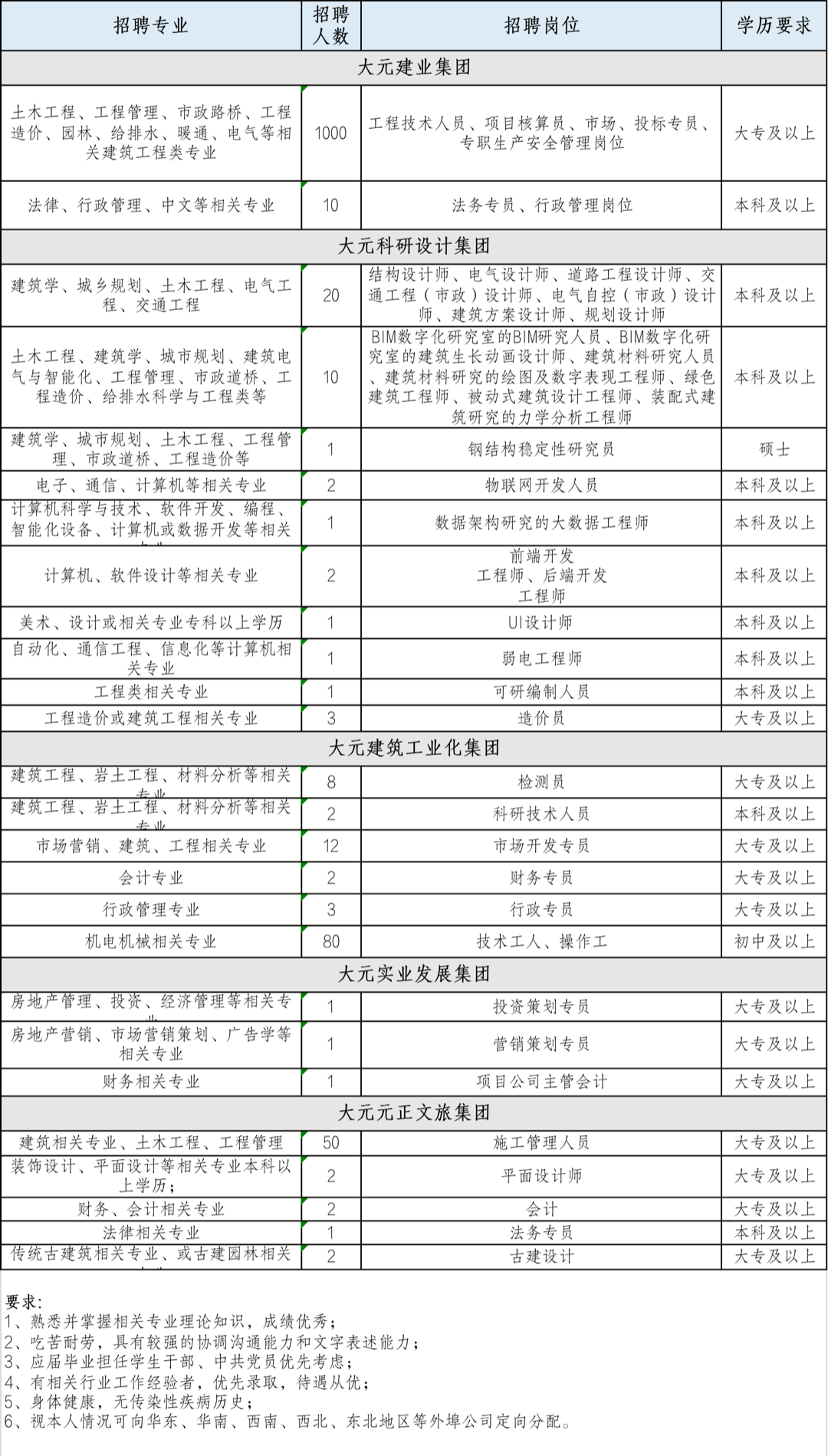 大元集团招聘简章