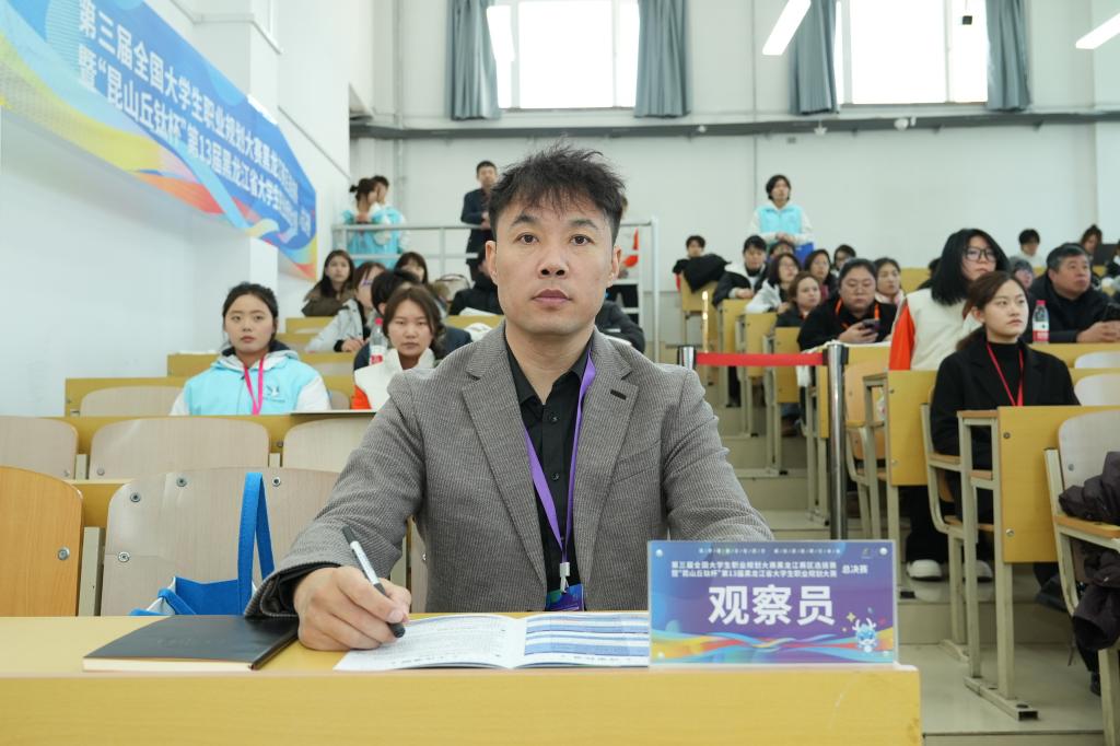 在省级决赛现场,就业与校企合作处处长陈旭辉受邀担任赛事监审观察员,全程参与赛事监督与评审工作。他认真观摩学习各高校选手的精彩表现,深入总结赛事组织的亮点经验,同时严格维护赛事过程的规范性与公正性,展现了哈尔滨石油学院教师严谨务实的工作作风。