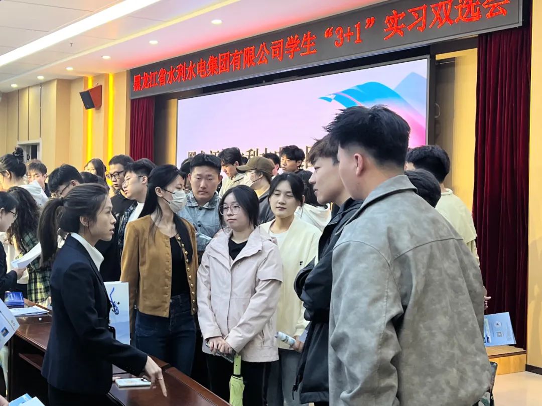 会上,黑龙江省水利水电集团有限公司人力资源部副部长马颖姑向到场的同学们介绍了企业概况、发展历程、工作环境、人才福利和职业规划等方面的内容,让同学们对企业加深了了解。同时,对企业实习岗位的工作要求、薪资待遇、公司福利以及工作环境进行了详细的说明,使同学们更加明晰的了解到日后实习工作中的环境及注意事项。各分公司招聘专员对分公司情况也简要做了介绍。宣讲会之后,同学们纷纷向心仪的公司投递了简历,并与到场的目标企业招聘专员进行深入交流,接受企业的选择,也增强了自我认知和职业认知,最终达成了实习意向。