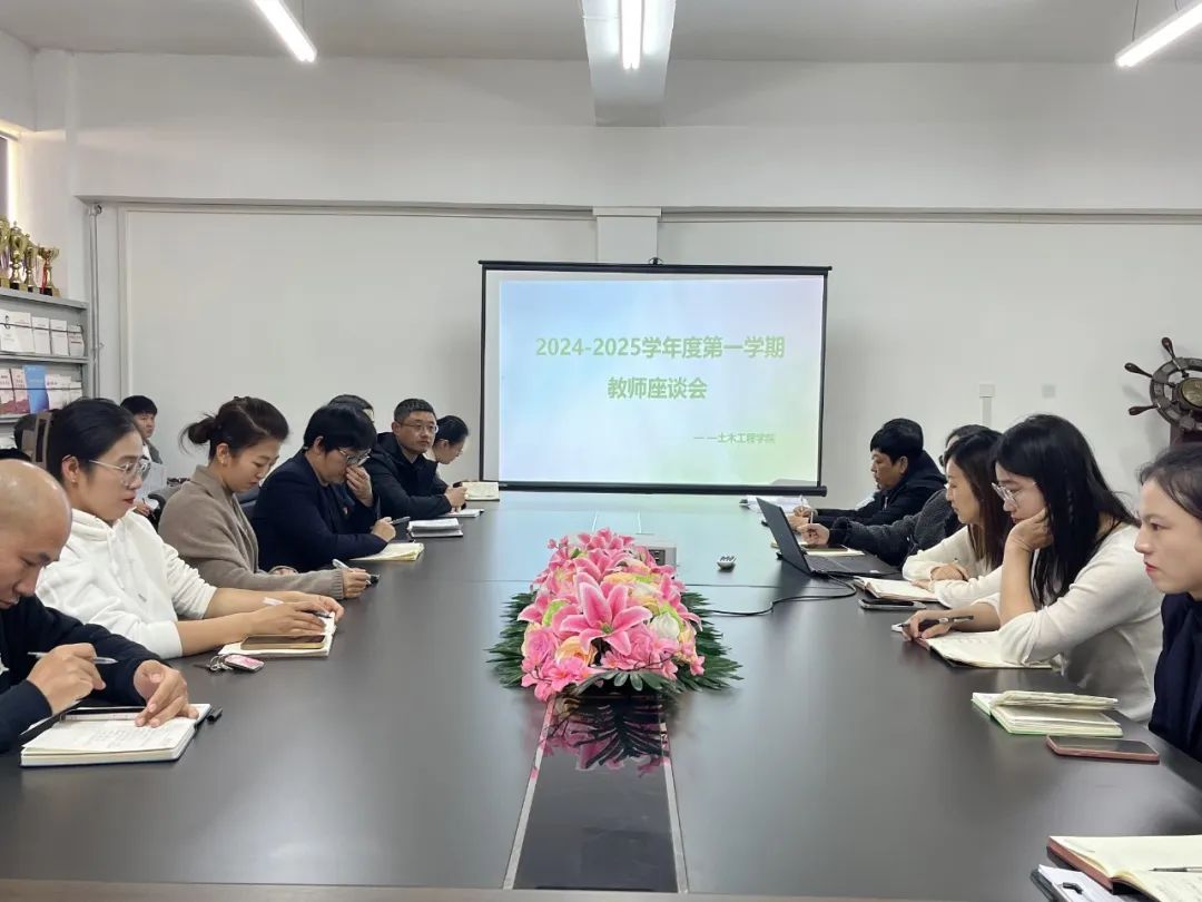 为增进教师教学交流,了解教师在教学过程中遇到的问题和困难,更好地服务教师,进一步优化教育教学管理,有效提高教育教学质量,2024年10月15日下午,土木工程学院于学院会议室开展了2024-2025学年第一学期期中教师座谈会。此次会议由院长盖晓连主持,学院全体教职工参会。