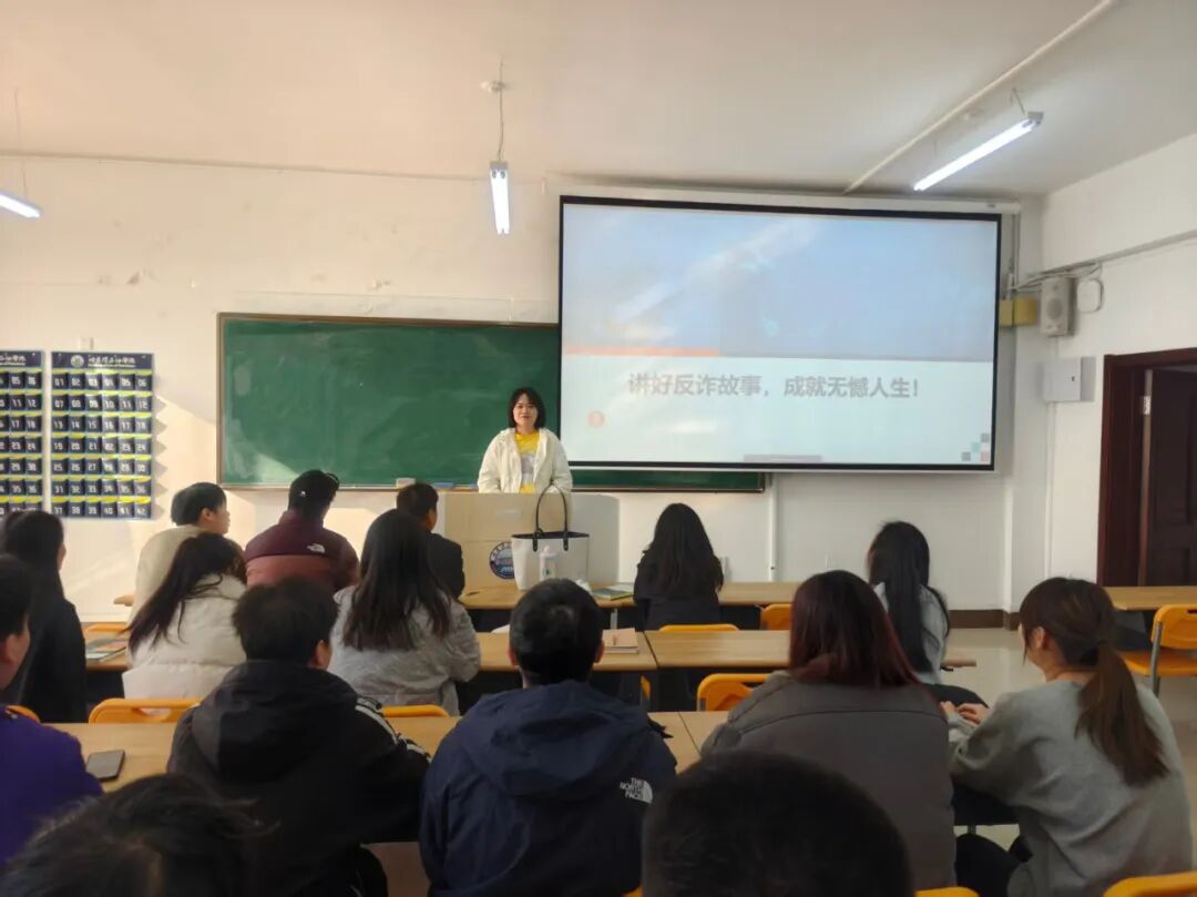 互动环节中,各班组织“反诈真实案例分享会”,邀请同学自愿分享自身或身边人经历的识骗、被骗相关真实故事——既可讲述成功识破“客服退款”“虚假中奖通知”“冒充熟人借钱”等骗局的识骗经过,分享判断依据与应对技巧;也可坦诚交流不慎被骗的真实经历,包括被骗场景、轻信的原因、造成的损失及后续处理方式。分享过程中,其他同学可随时提问、交流感悟,共同剖析骗局套路;最后结合分享案例,再次强化“三不一多”原则(未知链接不点击、陌生来电不轻信、个人信息不透露、转账汇款多核实),让大家在真实故事的触动中加深对反诈知识的理解,提升风险防范意识。