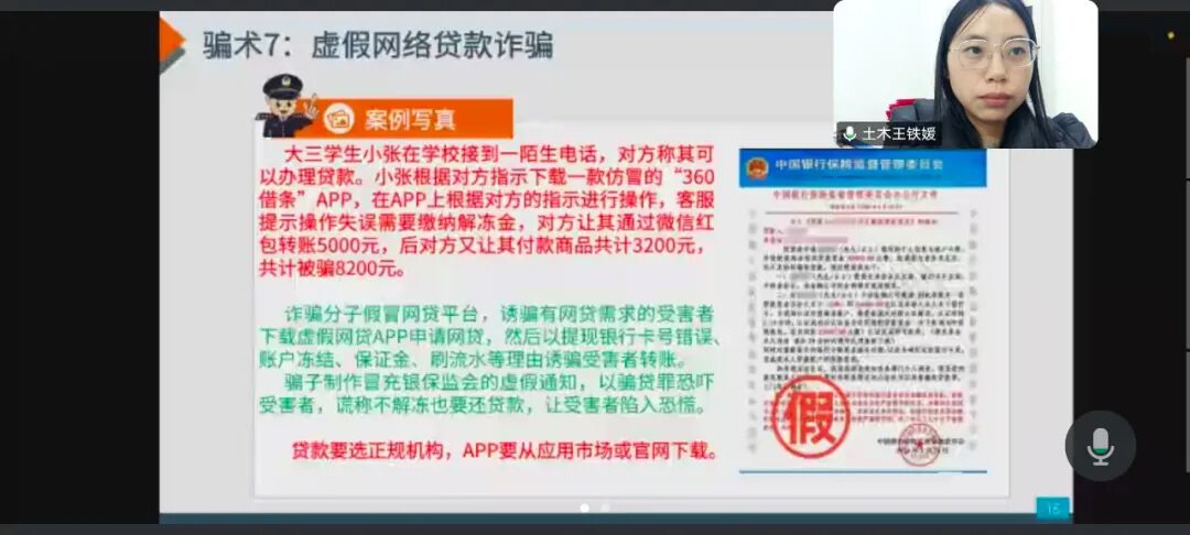 各班级围绕“识别诈骗陷阱,守护财产安全”核心主题,创新采用“案例讲解+互动讨论”的形式开展活动。班会中,辅导员结合近期高校高发的诈骗类型,通过PPT展示、短视频播放等方式,详细拆解“虚假校园贷”“刷单返利”“冒充熟人借款”“游戏账号交易诈骗”等典型案例,重点剖析诈骗分子利用学生社会经验不足、追求便捷优惠等心理设置的圈套,让学生直观认识到诈骗的隐蔽性与危害性。