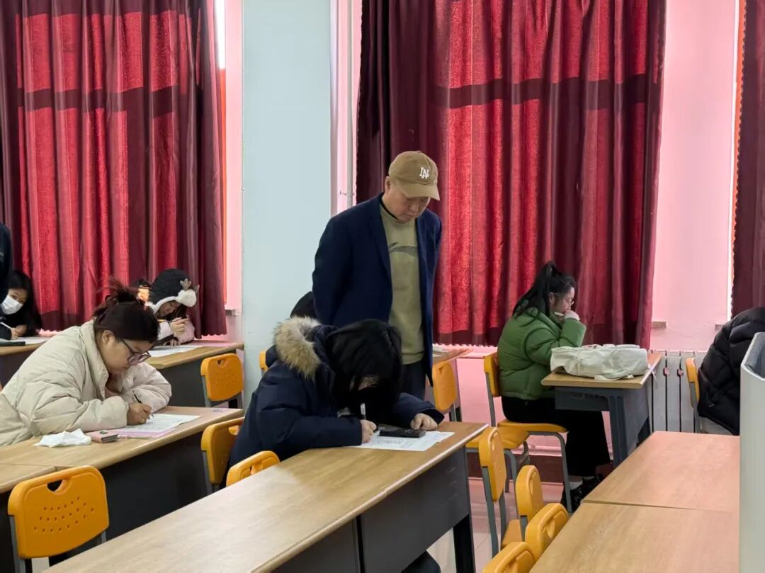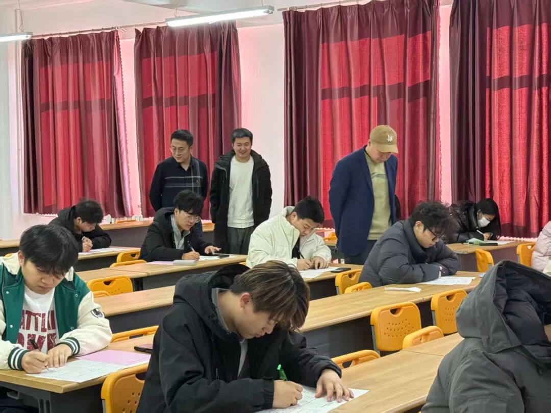为严肃考风考纪,强化诚信考试理念,营造公平公正的考试环境,2025年11月17日上午10:00,学院院长郑大宇、党总支书记刘强带领2023级辅导员深入各考场开展巡考工作,全程监督考试组织与执行情况。