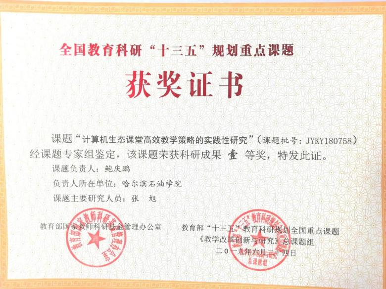 全国教育科研“十三五”规划重点课题科研成果一等奖