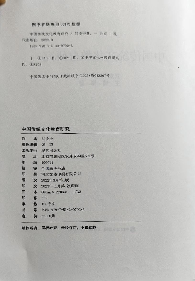 《中国传统文化教育研究》中国出版集团 现代出版社 2022
