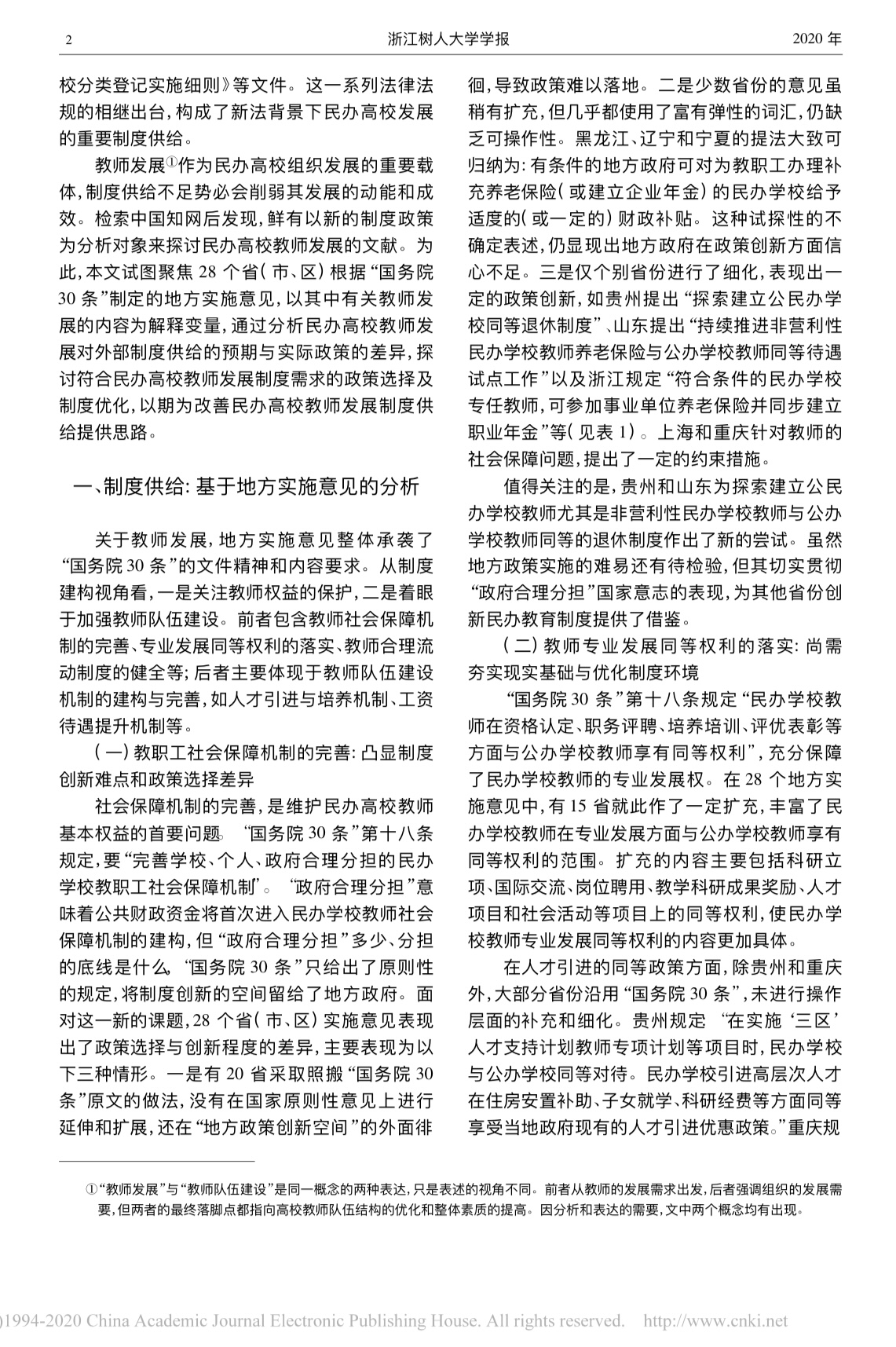 王义宁 民办高校教师发展的制度供给与制度需求——基于“国务院30条”及省级配套政策的分析 浙江树人大学学报 2020