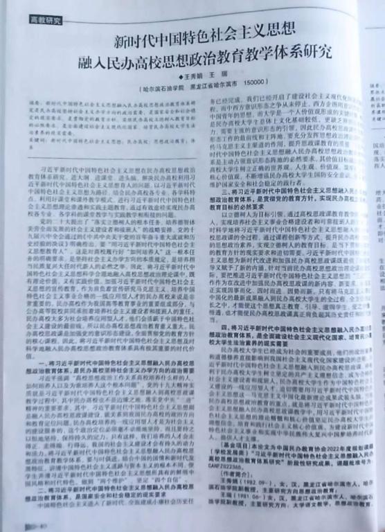 王瑞 新时代中国特色社会主义思想融入民办高校思想政治教育教学体系研究 新教育 2022