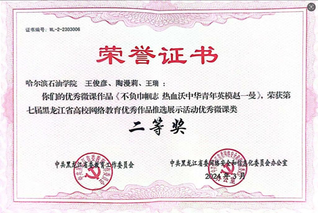 王俊彦 第七届黑龙江省高校网络教育优秀作品推选展示活动优秀微课类二等奖 2024