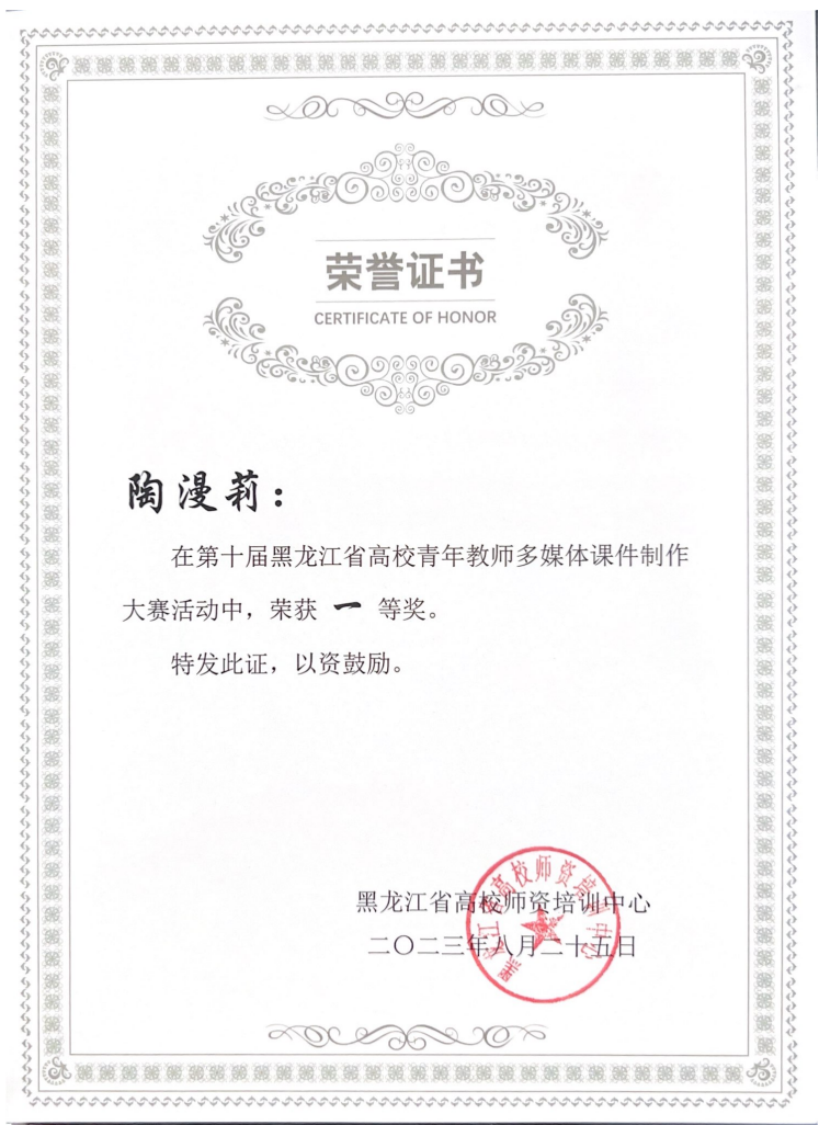 上一条:陶漫莉 《弘扬铁人精神 传承红色基因》获黑龙江省高校网络教育优秀作品推选展示活动二等奖 2024 下一条:陶漫莉 情景式党课《永不磨灭的丰碑——铁人精神》获黑龙江省高校“身在最北方 心向党中央”党课大赛二等奖 2024
