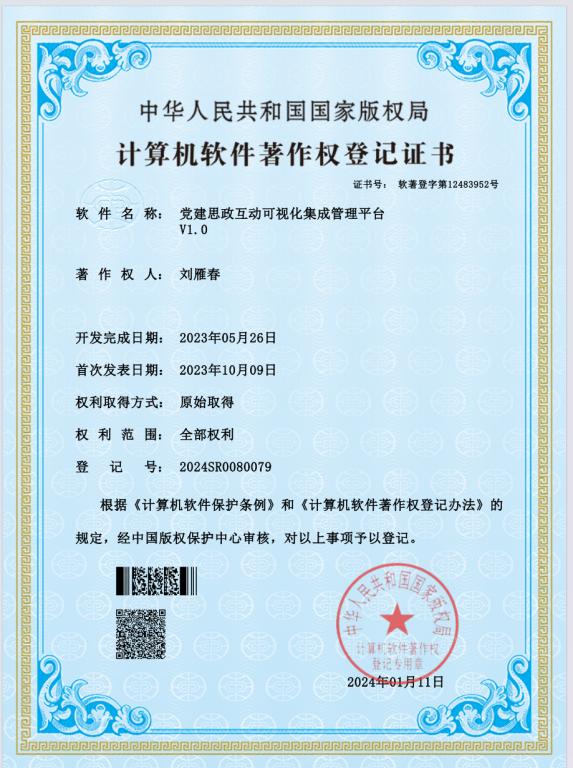 刘雁春 党建思政互动可视化集成管理平台 软著 2023