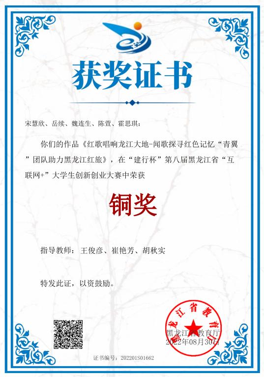 上一条:王俊彦 指导学生作品获第十九届“挑战杯”黑龙江省大学生课外学术科技作品竞赛三等奖 2025 下一条:王俊彦 指导学生作品获第十七届“挑战杯”黑龙江省大学生课外学术科技作品竞赛三等奖 2021