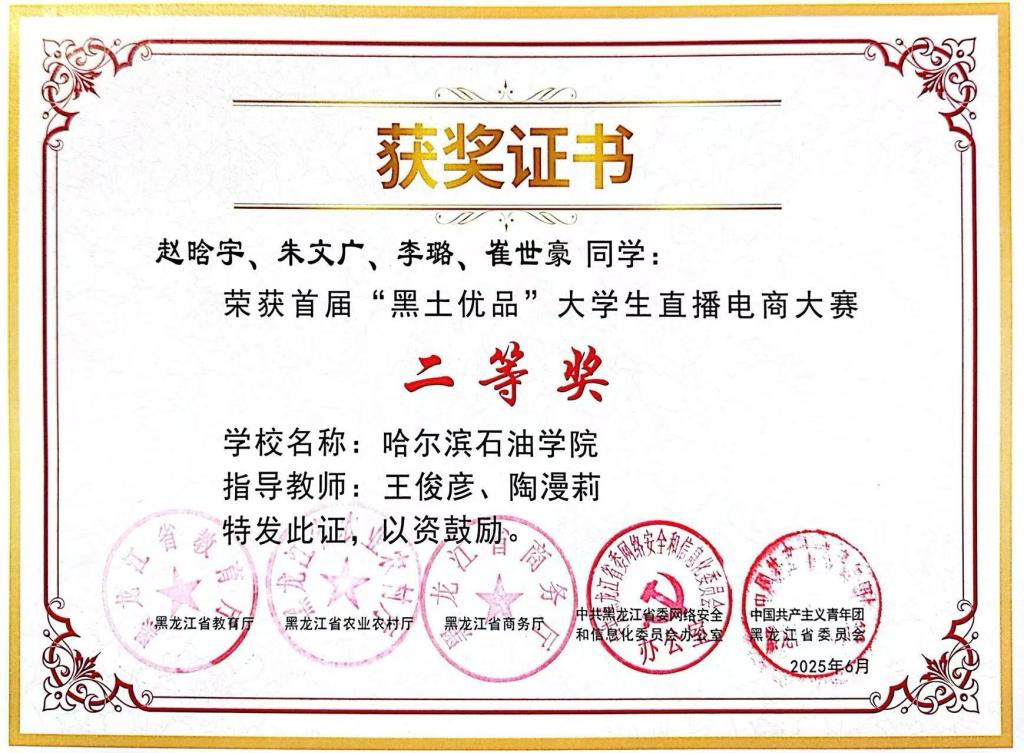 王俊彦 指导学生获“黑土优品”大学生直播电商大赛二等奖 2025