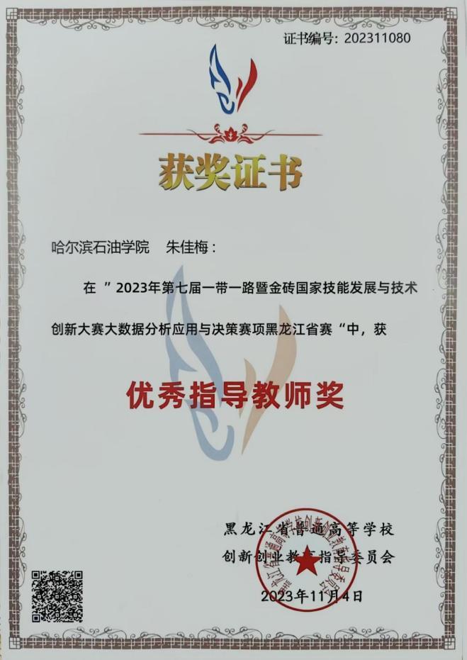 第七届一带一路暨金砖国家技能发展与技术创新大赛大数据分析应用与决策赛项黑龙江省赛区优秀指导教师