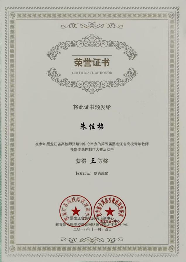 第五届黑龙江省高校青年教师多媒体课件制作大赛三等奖