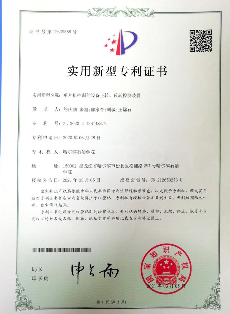 实用新型专利:单片机控制的设备正转、反转控制装置(2021.03)