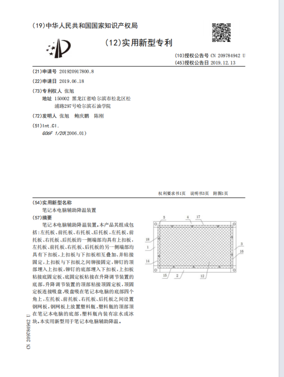 实用新型专利-笔记本电脑辅助降温装置(2019.12)