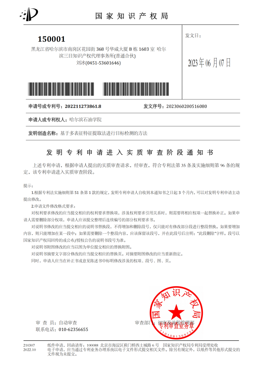 发明专利-基于多表征特征提取法进行目标检测的方法(2023.06)