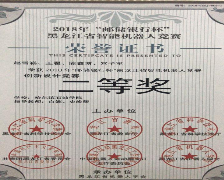 “邮储银行杯”黑龙江省智能机器人大赛二等奖(2018.11)