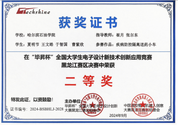 第十四届“毕昇杯”全国大学生电子设计新技术创新应用竞赛黑龙江赛区二等奖(2024.09)