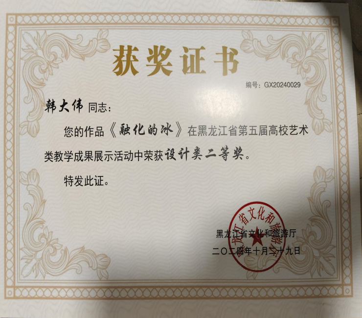 黑龙江省第五届高校艺术类教学成果展设计类省级二等奖(2024.10)