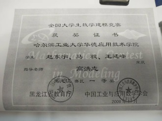 全国大学生数学建模竞赛省级一等奖(2006.11)