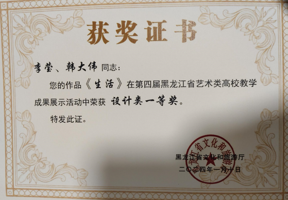 黑龙江省第五届高校艺术类教学成果展设计类省级一等奖(2024.01)
