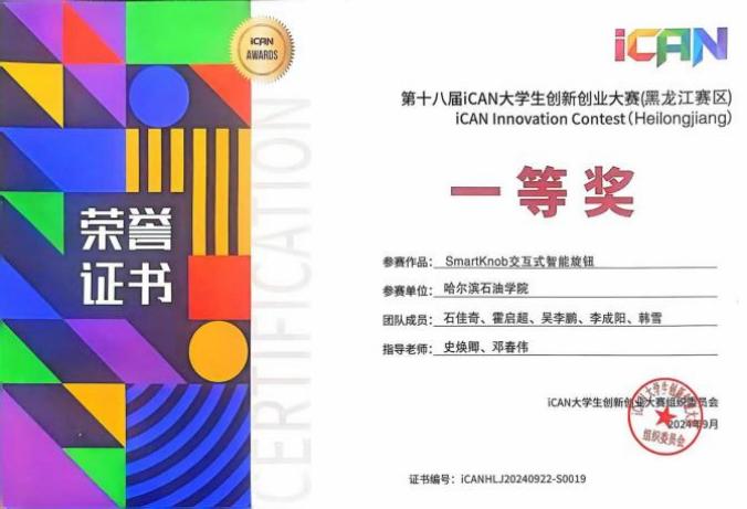 第十八届iCAN大学生创新创业大赛黑龙江省赛区一等奖(2024.09)
