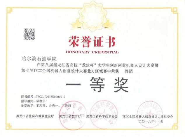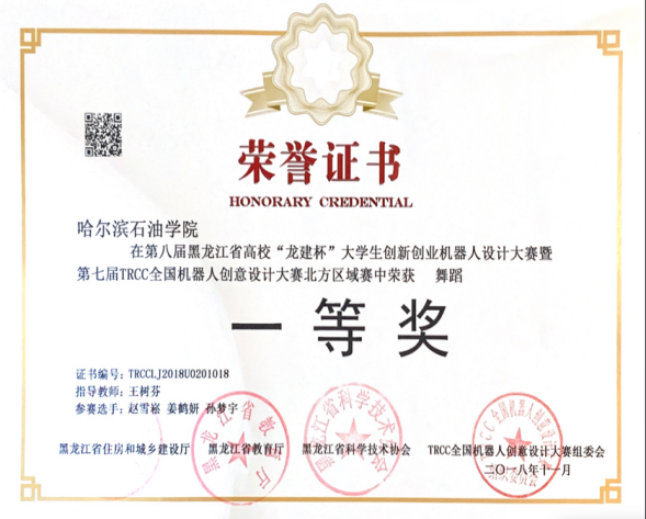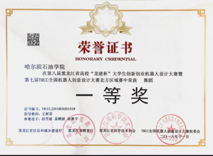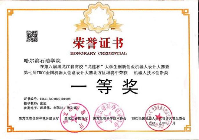 “龙建杯”大学生创新创业机器人设计大赛北方区域赛一等奖(2018.11)