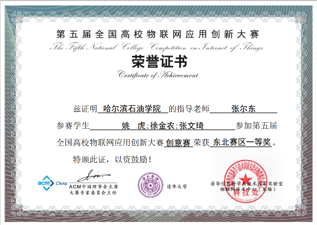第五届全国高校物联网应用创新赛东北赛区一等奖