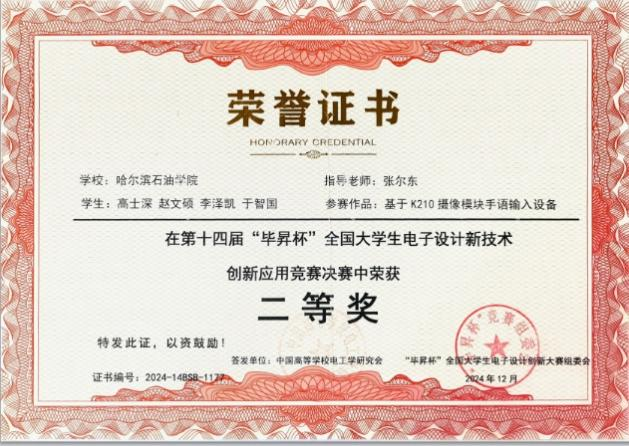 第十四届“毕昇杯”全国大学生电子设计新技术创新应用竞赛国家二等奖(2024.09)