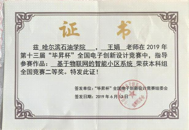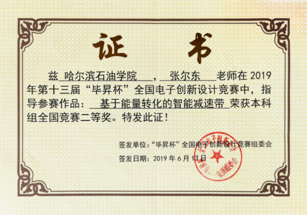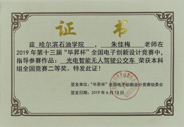第十三届“毕昇杯”全国电子创新设计竞赛国家二等奖(2019.06)