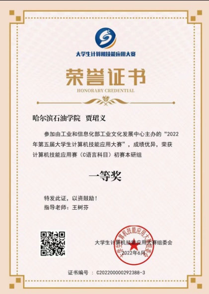 2022年第五届大学生计算机技能应用大赛一等奖(2022.06)