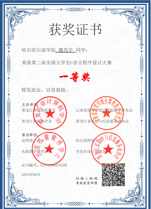 第二届全国大学生C程序设计大赛国家一等奖(2023.06)